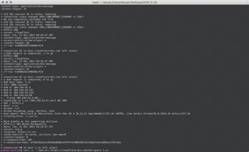 DoH をcurlでやる github を見ていたら、curl にDoHのサポートが入ってることを知った。早速使ってみました。 DNS問い合わせを curl で DoH する。 使うDoHサーバーはcloudflare を選びました。 curl -v --doh-url https://cloudflare-dns.com/dns-query t.c…